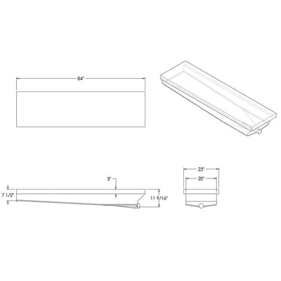 - What are the dimensions of this holding tank? The dimensions of the tank are 84 inches in length, 23 inches in width, and 12 inches in height.