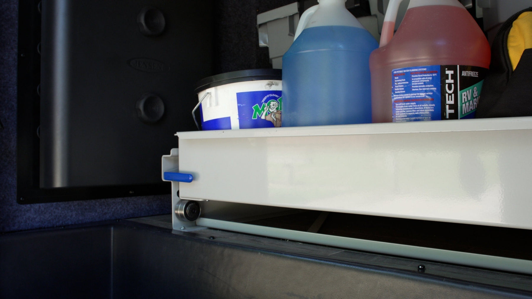 Turn a hard-to-reach compartment into convenient, easy-access storage space with sliding cargo trays for your RV. All our trays pull out easily, thanks to ball-bearing slides that glide smoothly. A two-way travel system on 90-inch models lets you slide out cargo from either side of your vehicle.