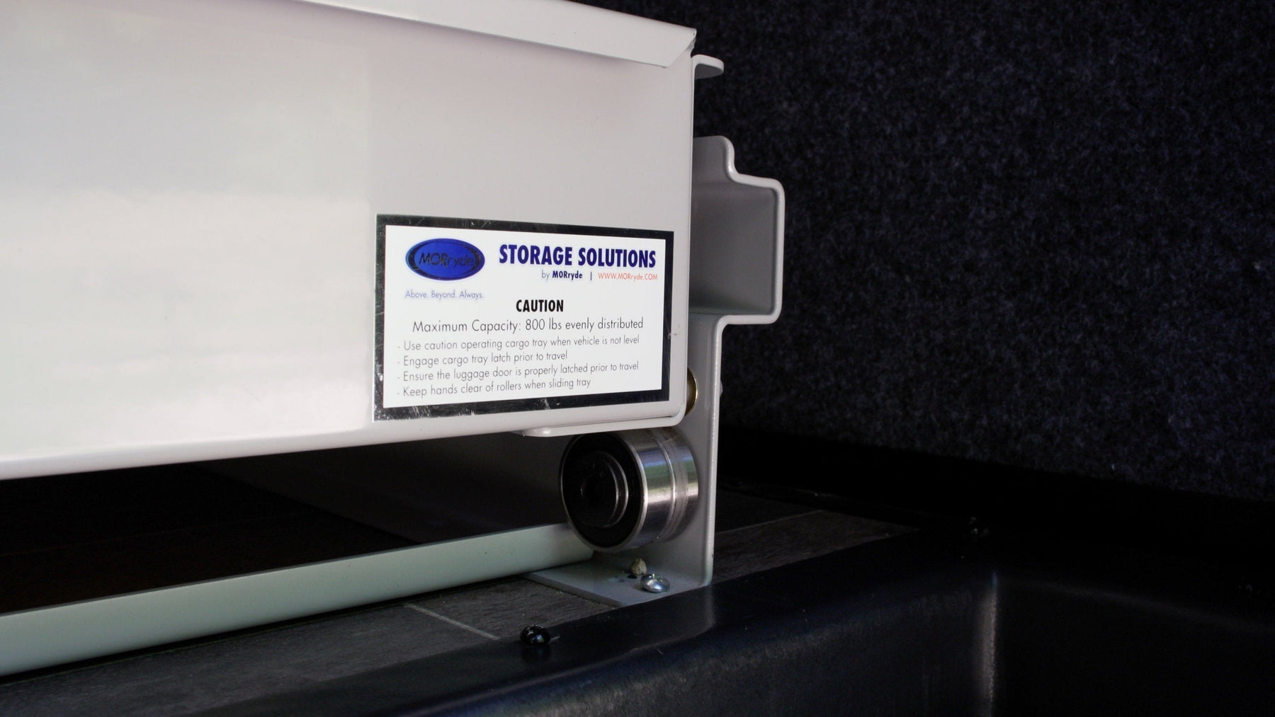A sliding cargo tray makes storage access easy, even in hard-to-reach compartments of your RV. Trays glide smoothly on ball-bearing slides that pull out toward you. All MORryde trays come fully assembled with carpeting already installed.