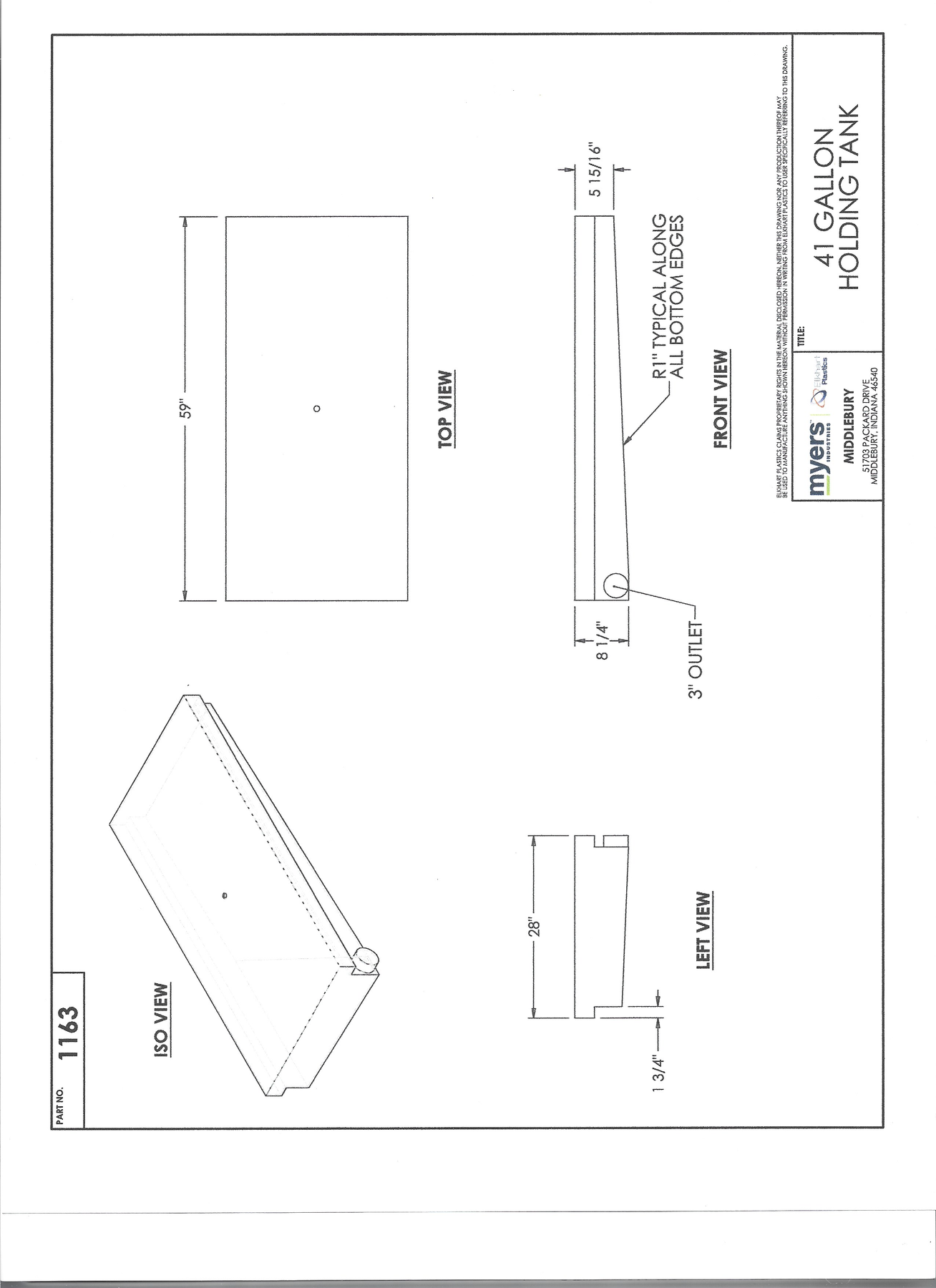 41 Gallon Holding Tank, 59" x 28" x 8" (Blank Tank w/no fittings, Fittings can be added per quote)