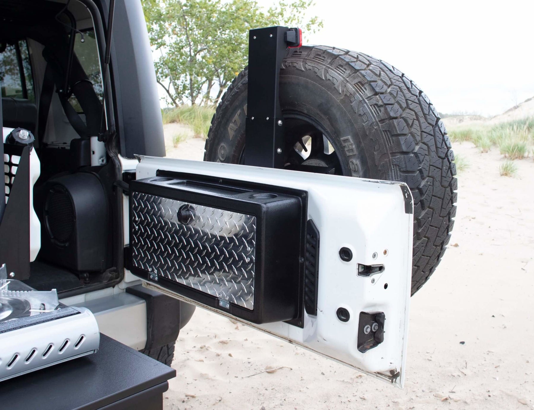 - Mounts inside Jeep JL or JK tailgate