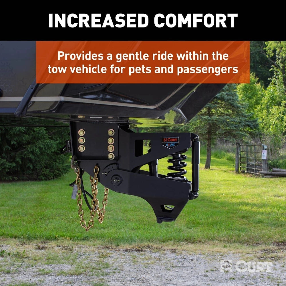 Every RV owner knows the frustration of unstable towing—the white-knuckle steering corrections, the trailer sway that worsens with passing trucks, and the constant worry about losing control. Standard pin boxes simply can't handle the demands of today's heavier trailers. The Curt™ Helux Coil-Spring Gooseneck Pin Box solves these problems with an engineered system that maintains control at highway speeds.