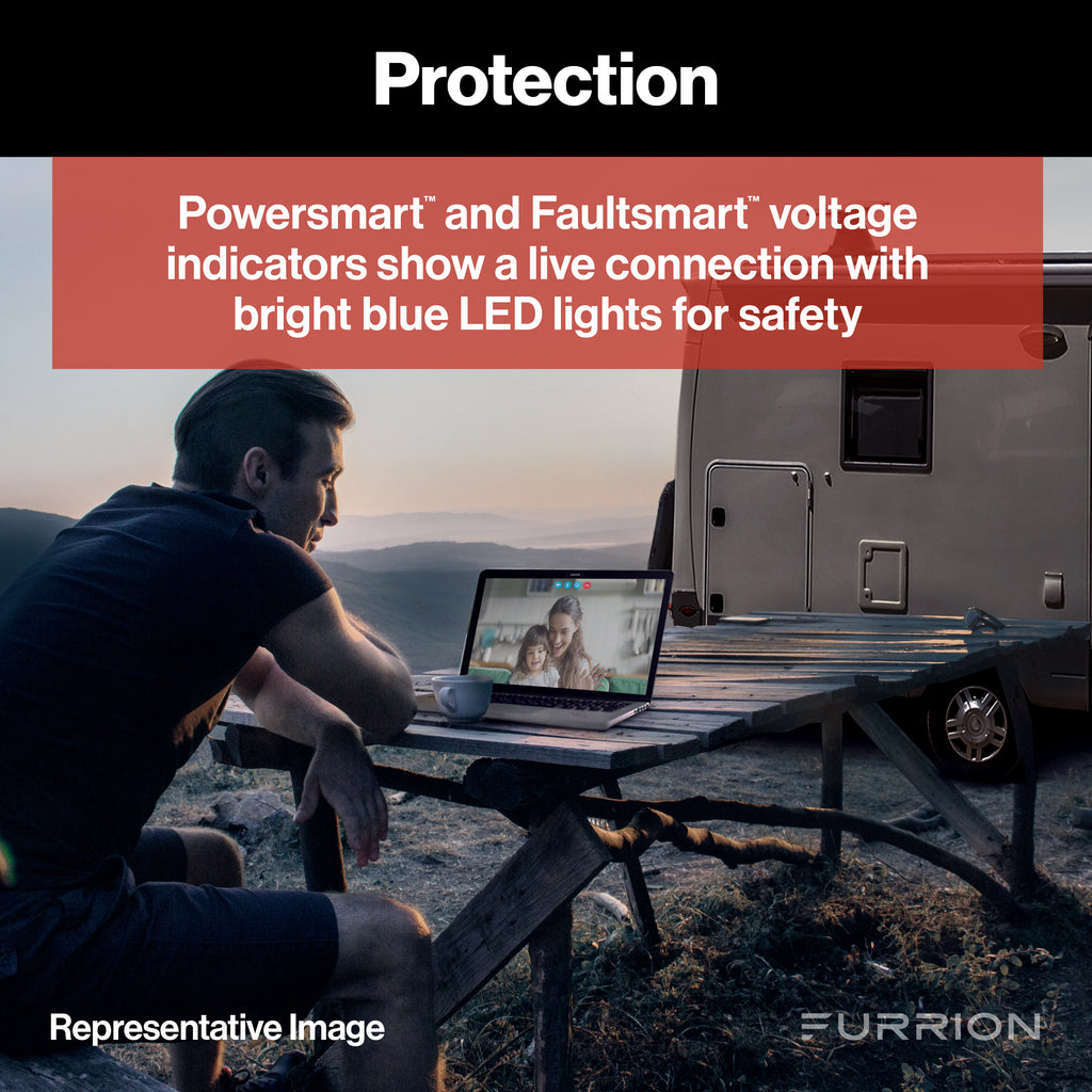 Constructed from high-grade, corrosion resistant materials, Furrion RV pigtail adapters offer superior longevity in harsh environments. Powersmart™ and Faultsmart™ indicators provide a valuable safety component with an instant visual connection status while the Pullsmart™ handle allows you to disconnect while preventing a power surge. The male end also boasts ergonomic grips so you can connect and disconnect, hassle-free. Meeting global industry standards and offering a NEMA universal fit with other brands, these RV pigtail converters are rated up to 600V and 221°F (105°C). Furrion stands behind its shore power products with a five-year warranty.