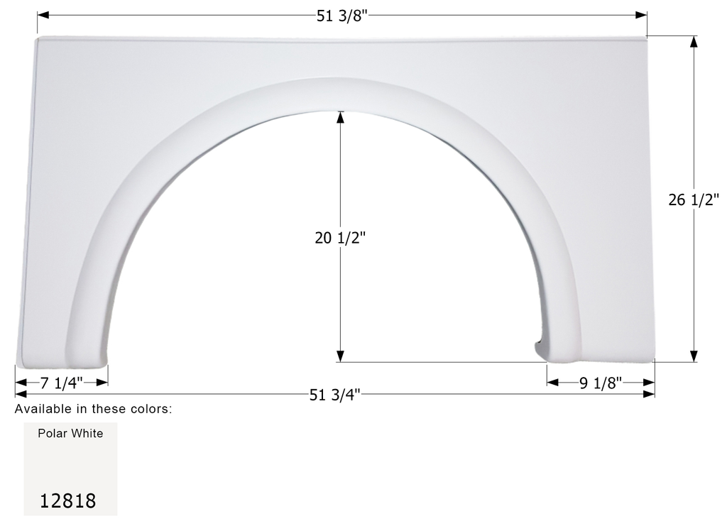 - What are the dimensions of this fender skirt? The fender skirt has a height of 5 inches, length of 55 inches, and width of 29 inches.