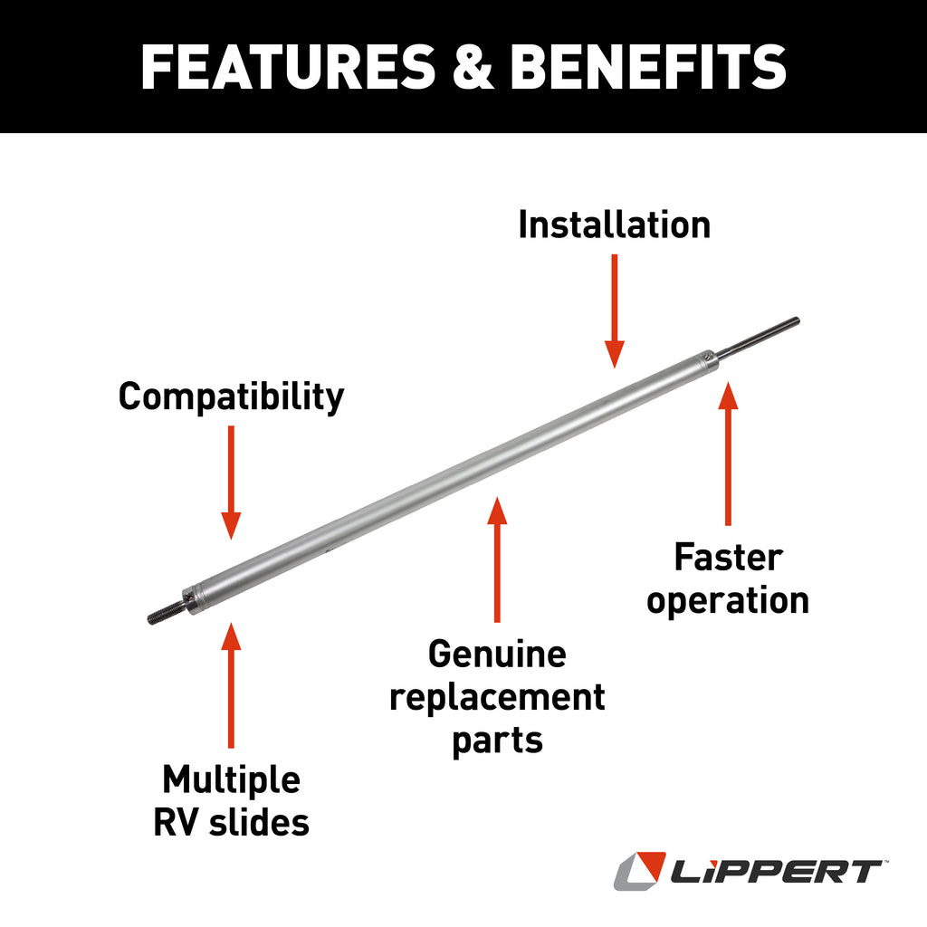 - FITS LIPPERT SLIDE-OUTS — This replacement hydraulic cylinder is specifically designed to seamlessly replace the hydraulic cylinder within various types of RVs, including 5th wheel RVs, travel trailers and motorhomes equipped with Lippert slide-out systems