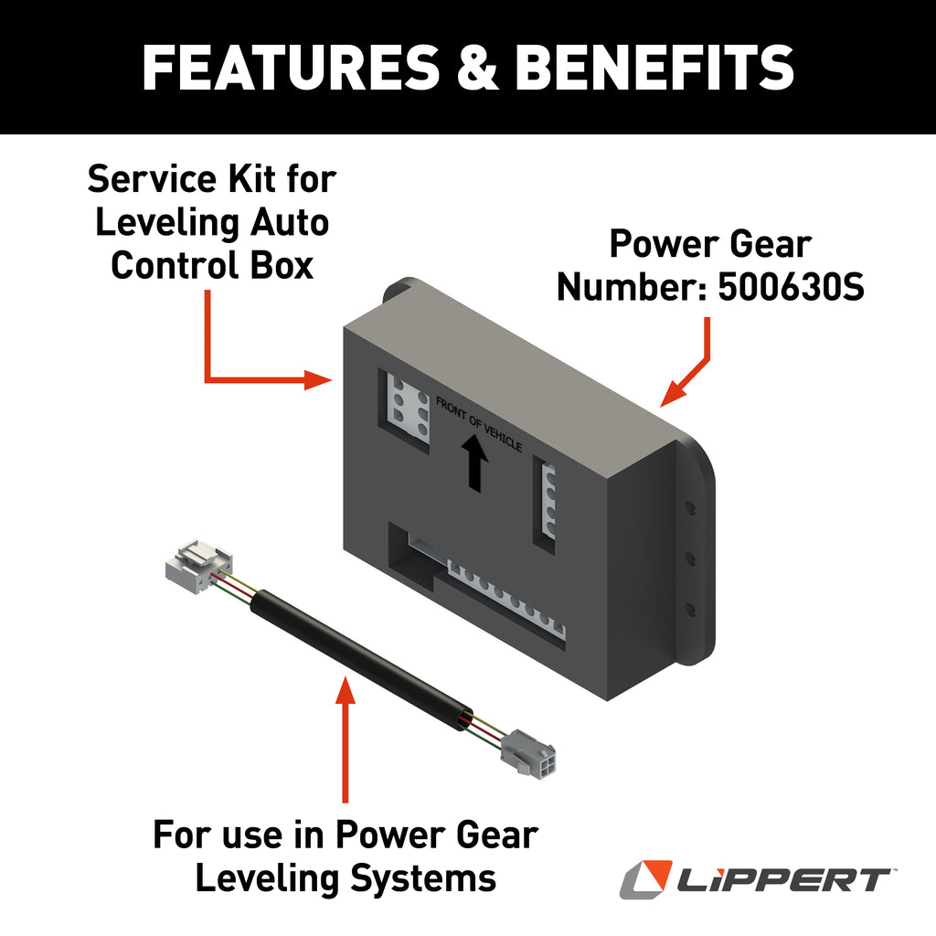 Easily restore your RV’s leveling system with the Lippert Auto Control Box Service Kit, designed specifically for Power Gear leveling systems. This compact kit ensures reliable performance and is a direct replacement for part number 500630S, making repairs simple and hassle-free.---