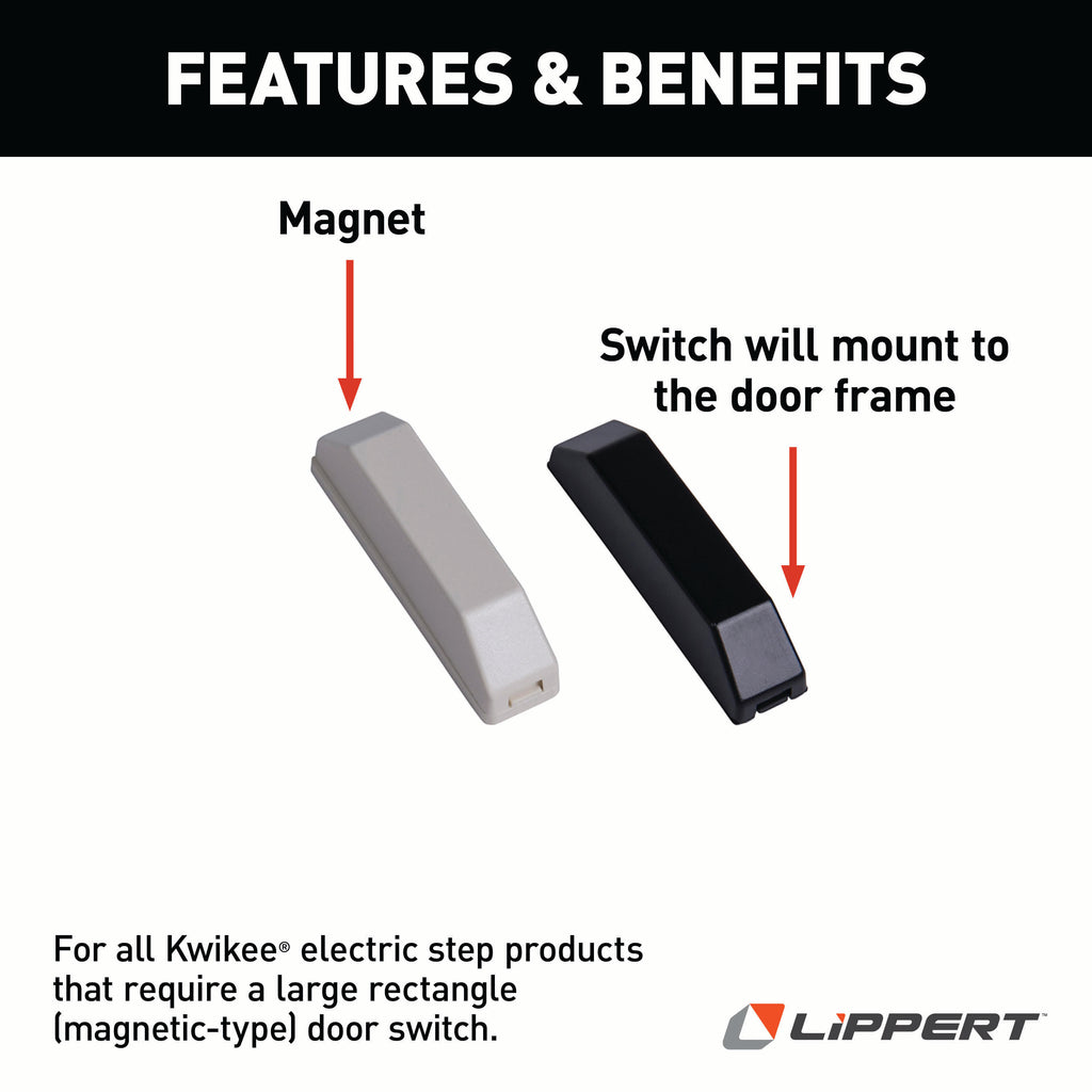 - What is the physical weight of the lippert kwikee large rectangle door switch kit? The physical weight of the product is 0.06 pounds.