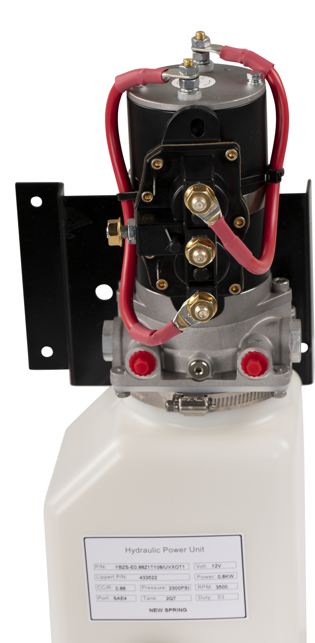 - HYDRAULIC SYSTEM EFFICIENCY — The hydraulic power unit, in conjunction with the 2-qt. pump reservoir kit, enhances the efficiency of the hydraulic slide-out system. This optimized setup ensures smooth and reliable operation of the slide-out mechanism