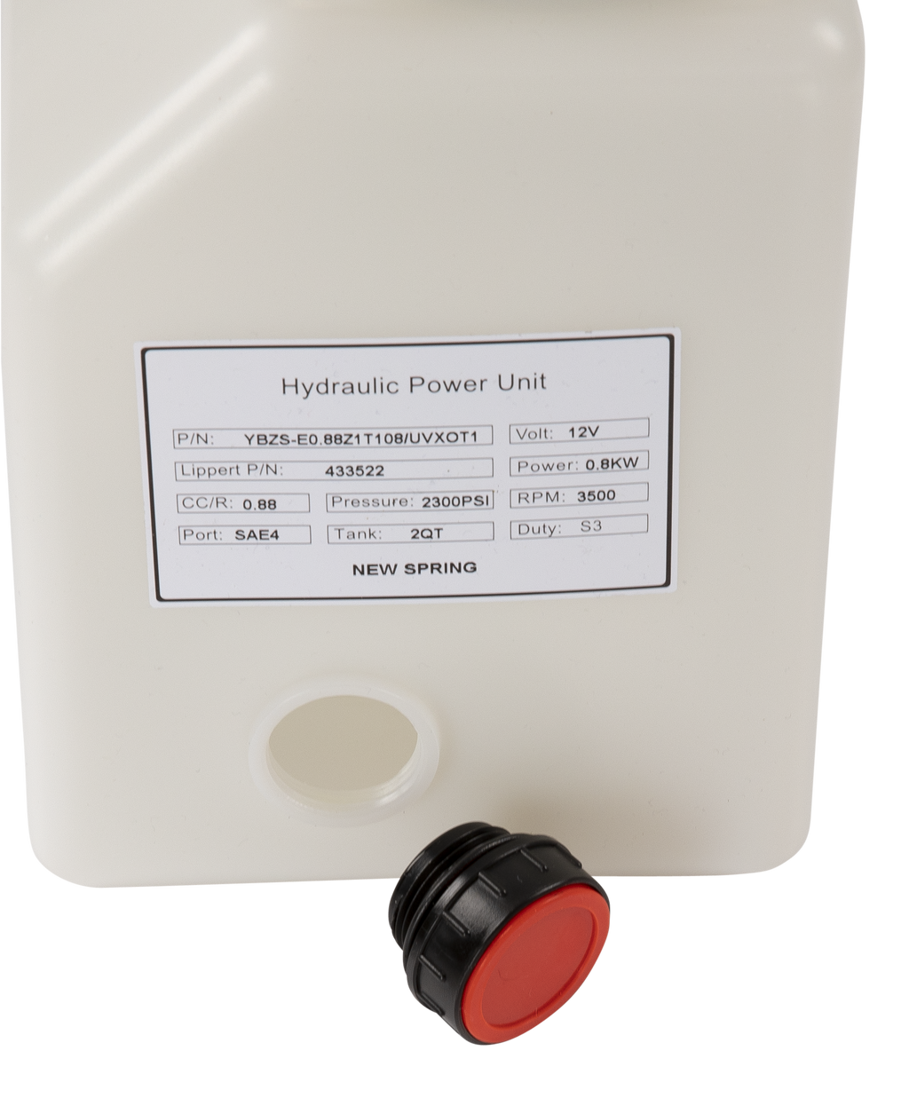 Most commonly used in Lippert hydraulic slide-out systems, this hydraulic power unit is a staple. Additionally, you can purchase the 2-qt. pump reservoir kit and the yellow fill cap separately.