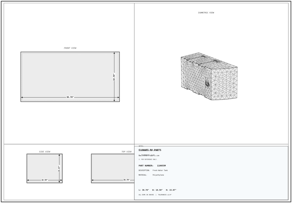 MAKS Fresh Water Tank 18.5 X 34 X 13.25 - 31 Gallons - No Drain - Molded Tank