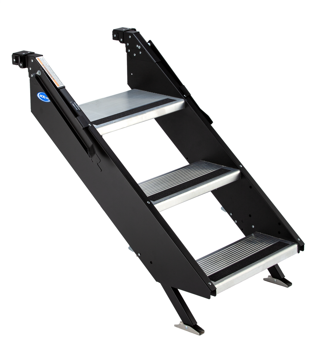 Enhance your RV entry with the MORryde STP-220 Front Mounted Patio Entry Step, a tall 3-step system designed for front-mounted patio door applications with higher entry heights. This premium entry step system provides safe, stable access with extended height for taller RV entries.