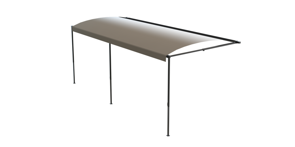 - Arms detach from bottom bracket and easily swing to “carport” position, providing varied pitch options to block the sun at any time of the day