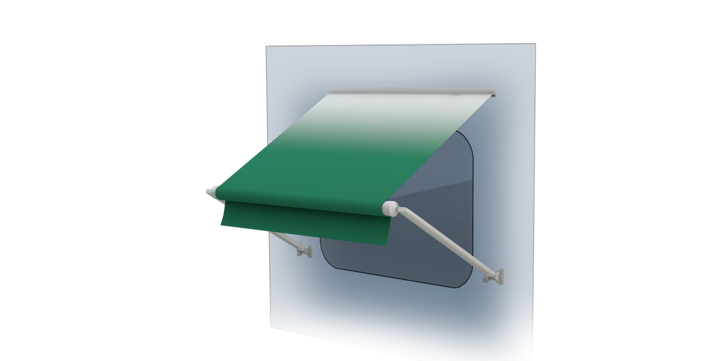 - What material or color is the fabric of this awning? The fabric is in a Green Fade color.