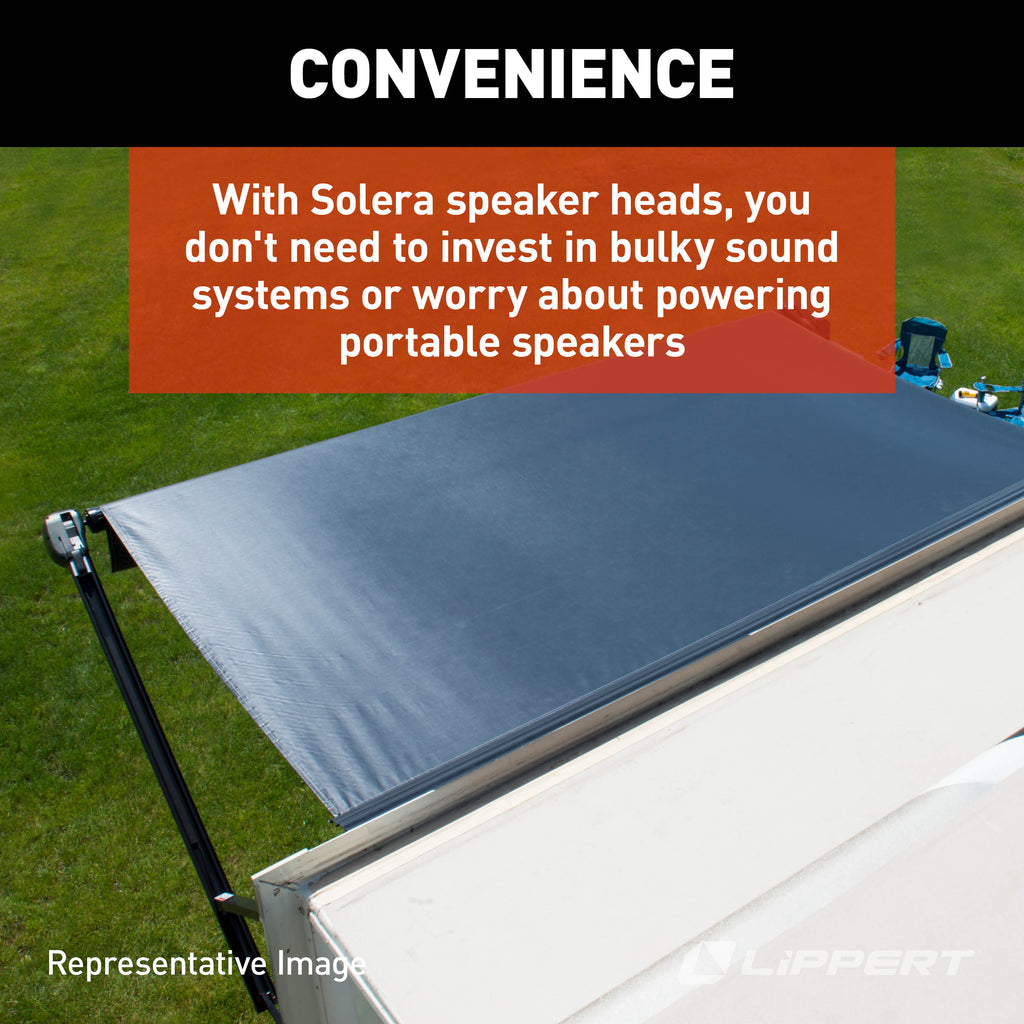 - PATIO UPGRADE — With Solera awning speaker heads you can enjoy the game, listen to music or enjoy a movie outdoors with clear, crisp sound built right into your awning