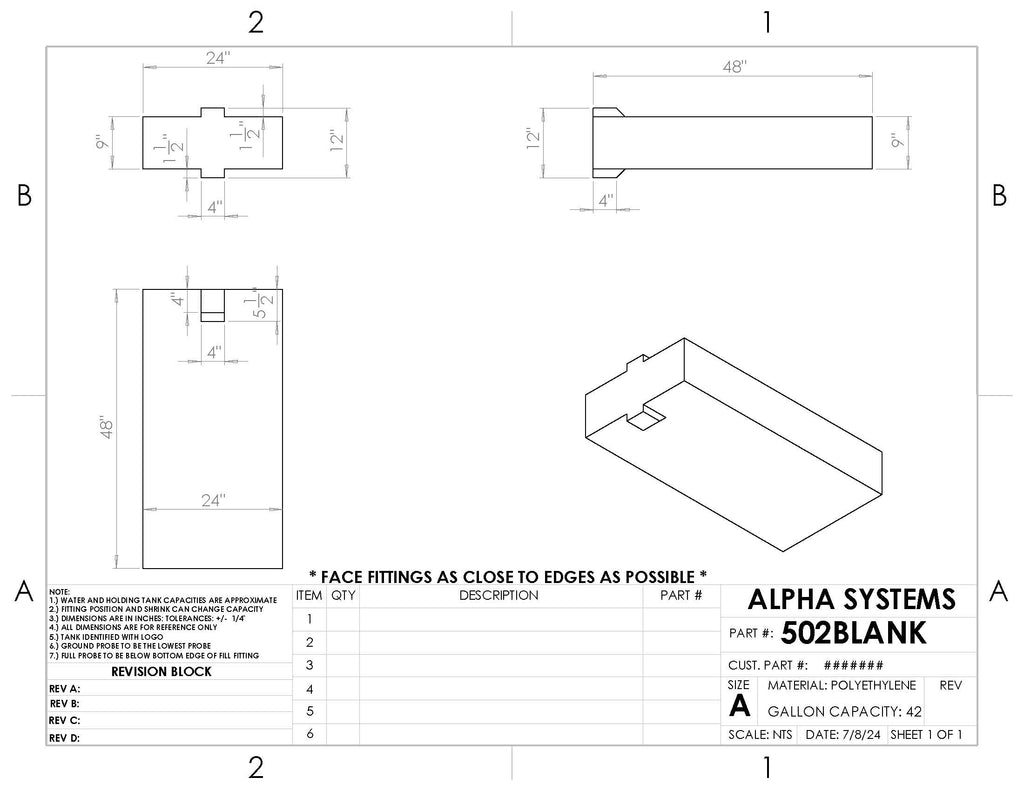 - What are the dimensions of this fresh water tank? The tank measures 48 inches in length, 24 inches in width, and 12 inches in height.