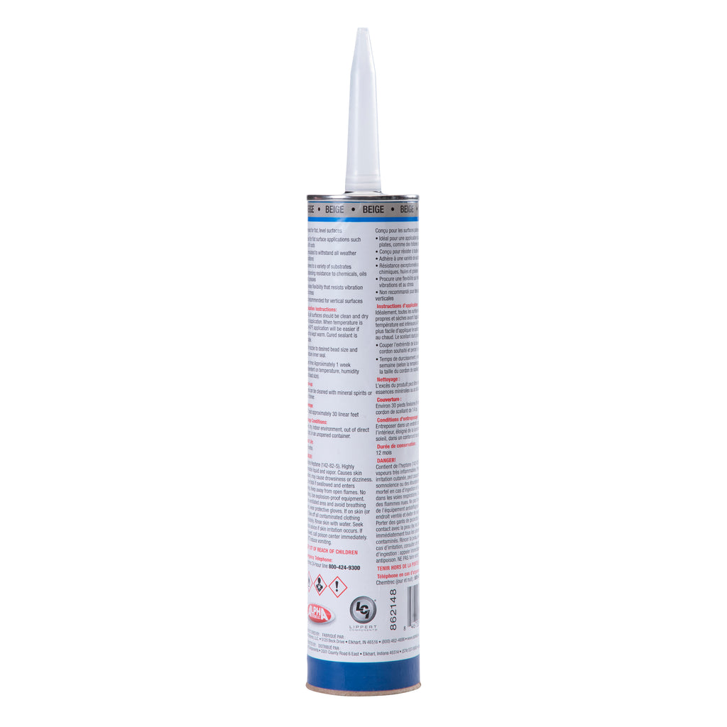When it's time to repair your RV's roof, trust the name the pros use! The Alpha Systems 1021 self-leveling lap sealant is perfect for sealing horizontal, flat areas of your RV, like your rooftop and around roof structures like vents, antennas, skylights and more. This is is a self-leveling sealant that is designed to work on flat, horizontal surfaces of your RV and can withstand the elements and wear and tear of travel. It has excellent adhesion to rubber, metal or fiberglass RV roofs. Plus, once it’s fully cured, it can hold up against the shock, vibrations, and stress of outdoor transportation. All so you can travel without worrying about a leaking roof.