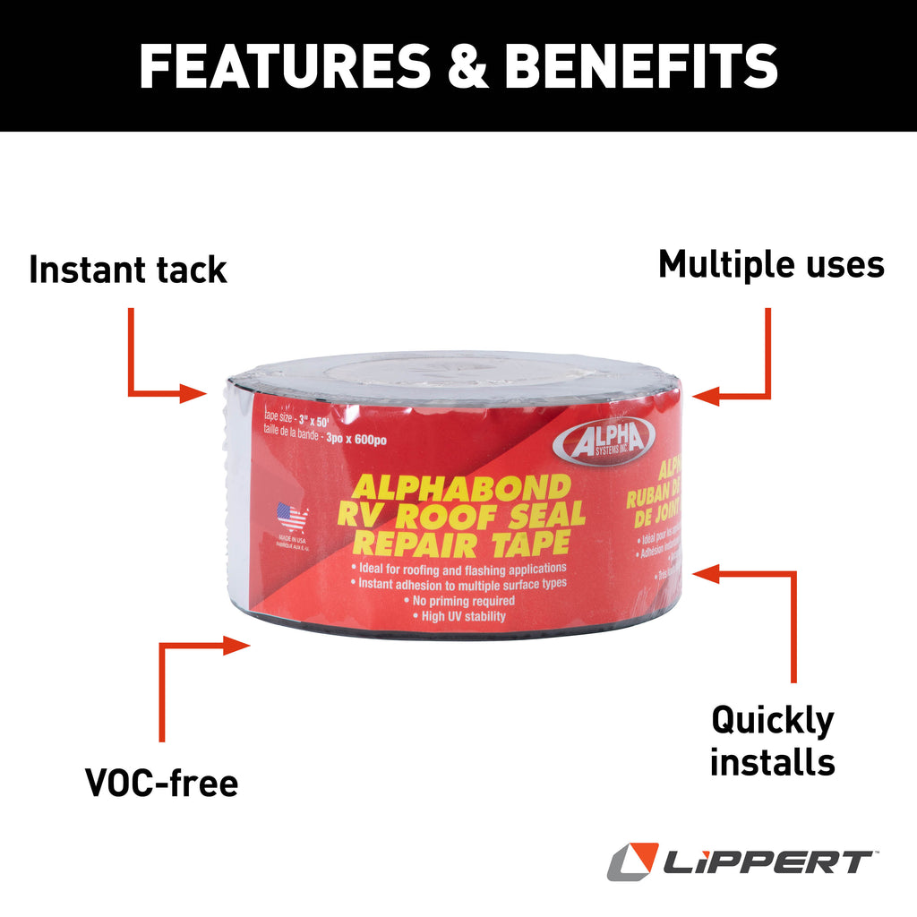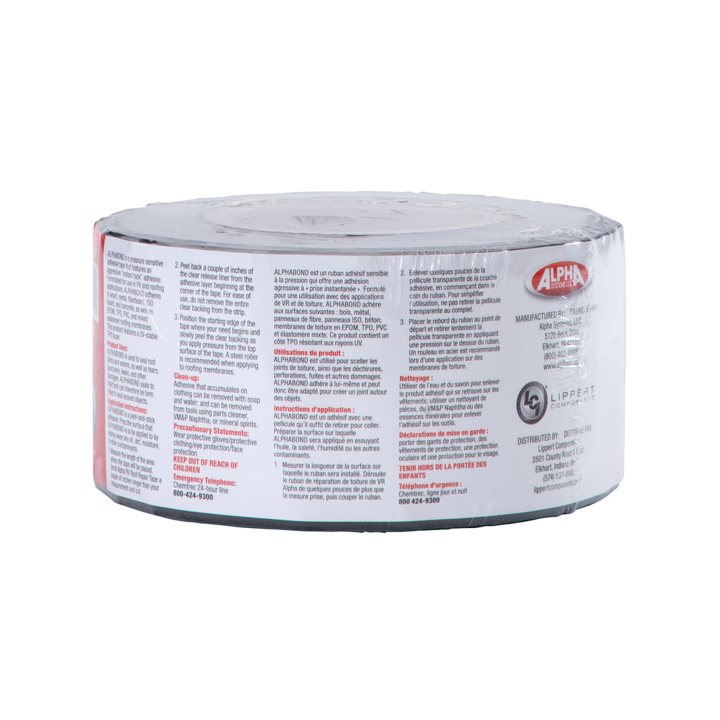 A state-of-the-art proprietary adhesive, ALPHABOND TPO tape is the go-to tape for your next RV roofing project. Pressure-sensitive, it has an aggressive “instant tack” adhesive. Wood, metal, fiberboard, ISO board, and concrete, as well as EPDM, TPO, PVC, and mixed elastomer roofing membranes — you name it, it adheres to it. Plus, it boasts a UV-stable TPO facer that makes it ideal for flashing. And now all Alpha Systems products our exclusively distributed by Lippert.