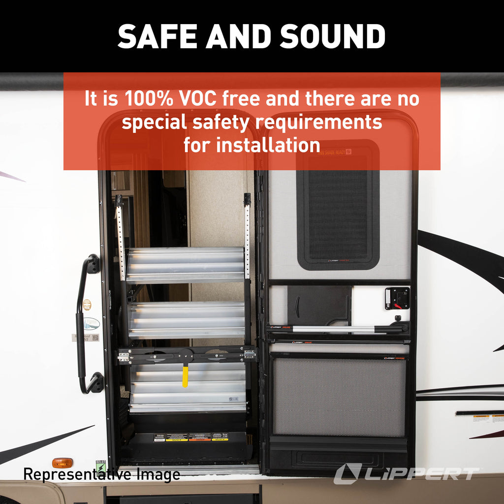 - SAFE AND SOUND — Our butyl tape is 100% VOC free and there are no special safety requirements for installation