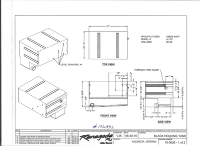 Specifications drawing for 75 Gallon RV Holding Tank 37