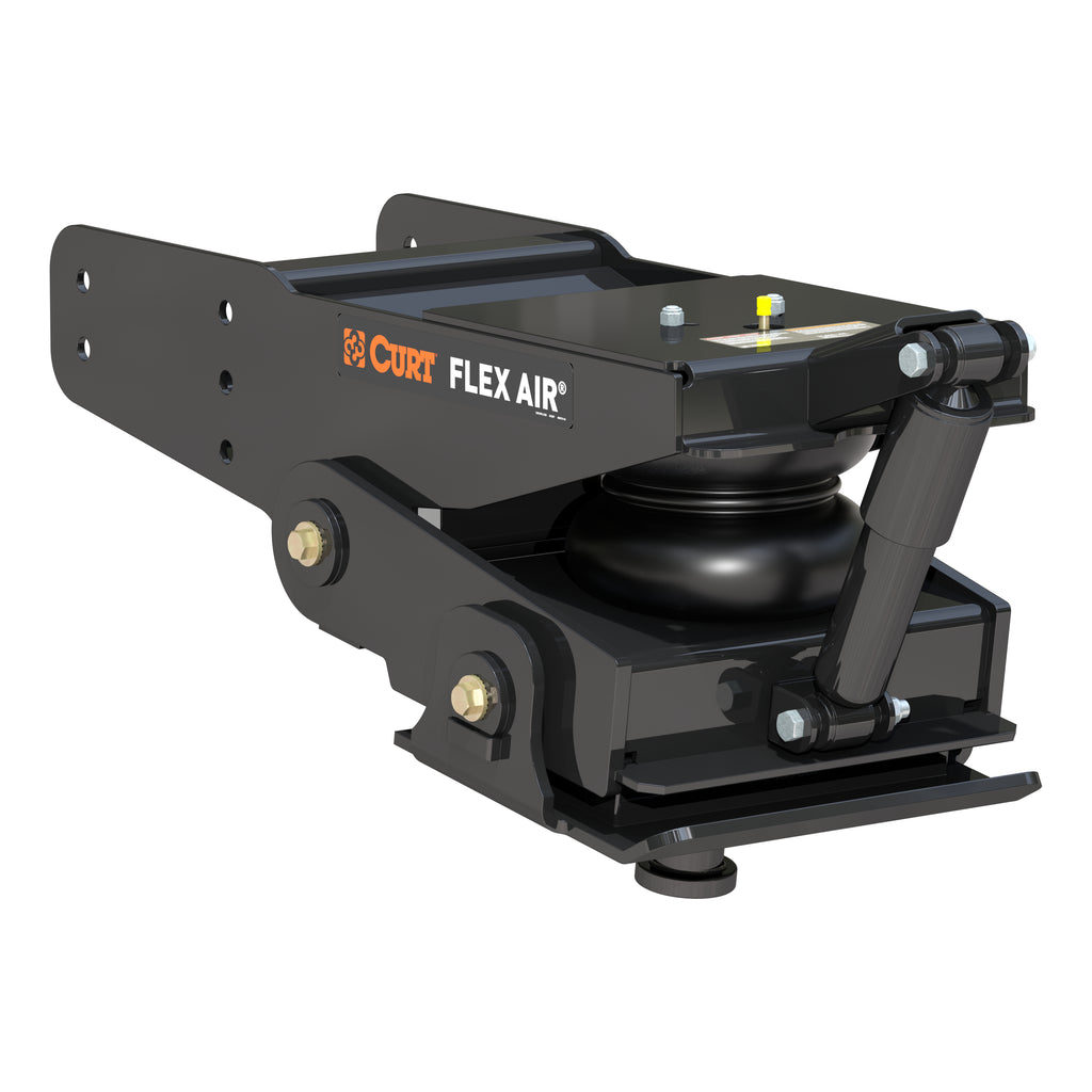 With the Flex Air® Pin Box by CURT®, you can stabilize your 5th wheel trailer or RV with ease. The Flex Air boasts an internal air bag and built-in strut that team up with a rubberized pivoting head to reduce chucking and virtually eliminate bounce and jarring. The pivoting head regulates movement of the king pin within the hitch while the rubber compound absorbs road shock, giving you a smooth ride that keeps things in control through harsh roads. Leave unwanted movement right at home!