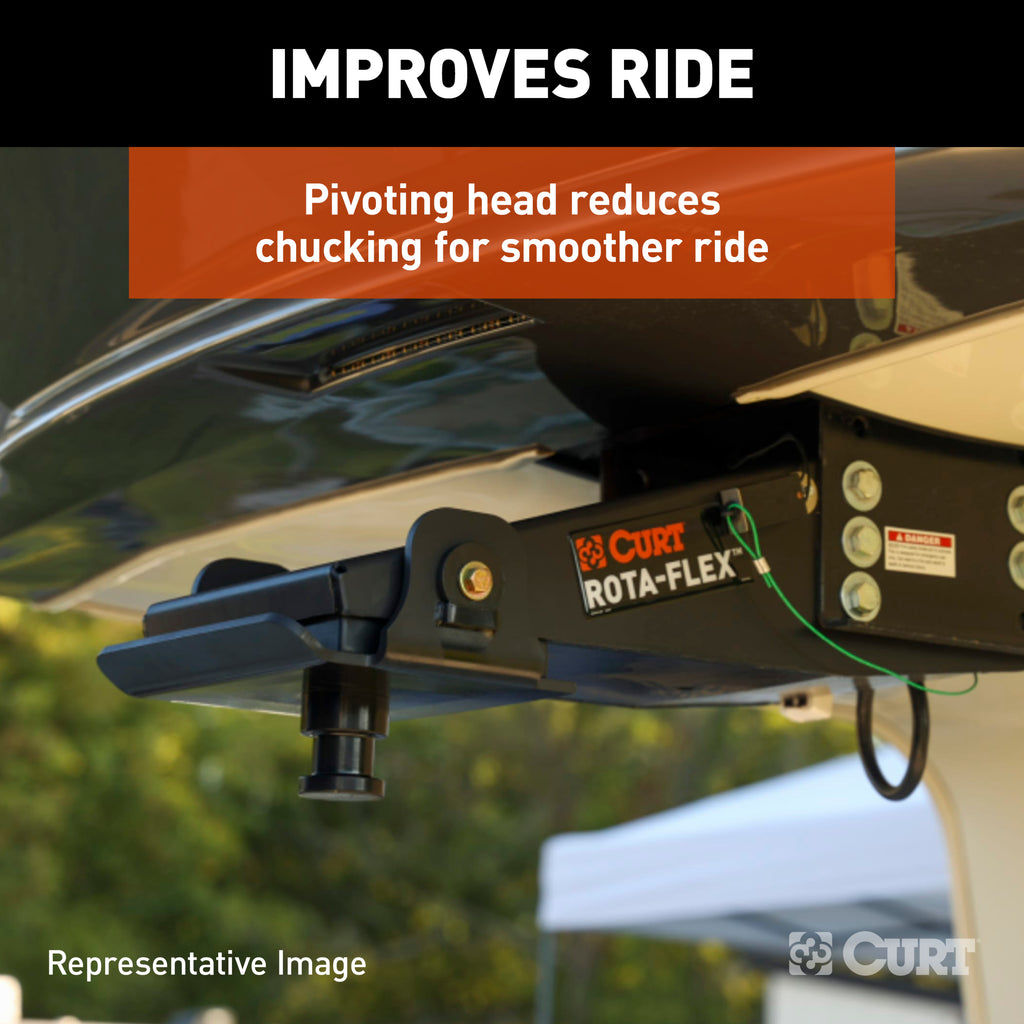 - IMPROVES RIDE – The Rota-Flex boasts a pivoting head that moves and controls back and forth movement of the king pin within the hitch which significantly reduces chucking and provides a smoother ride