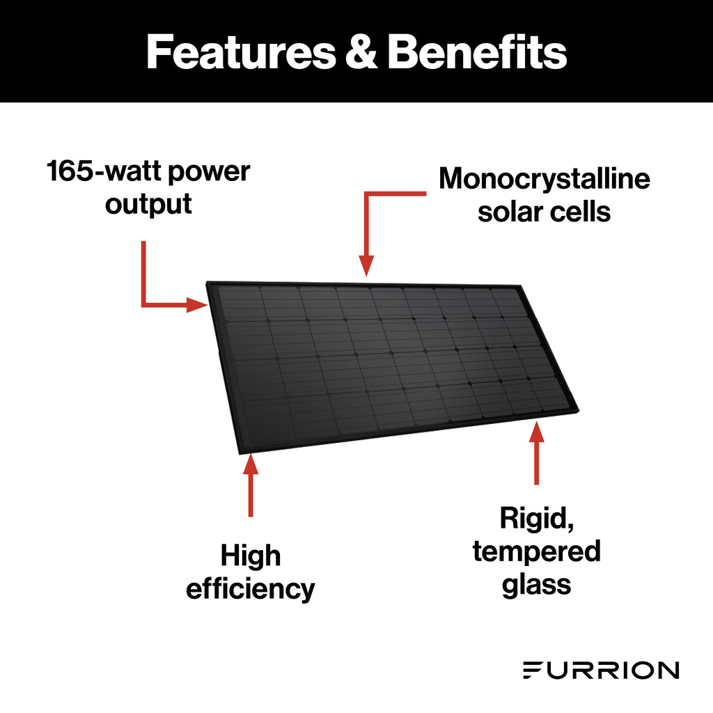 - FURRION SMART - The built-in Climatesmart technology protects the solar panel from fluctuating temperatures, and the Vibrationsmart tech protects the panel from internal vibrations from road conditions
