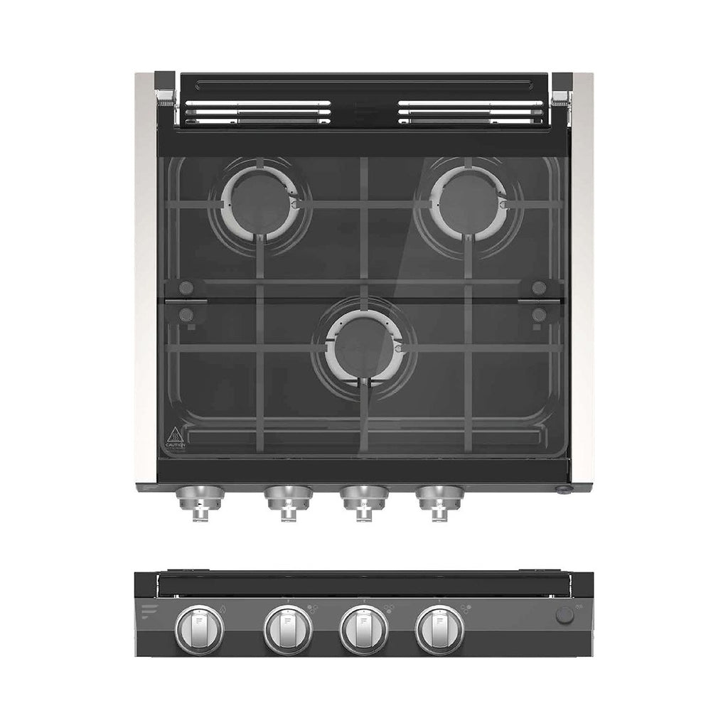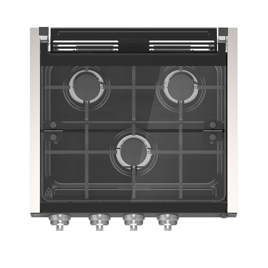 The Furrion 20" 3-burner RV gas cooktop provides 21,000 BTUs of total cooking power to make cooking easy in your RV, food truck or specialty vehicle. It boasts cast iron grates that are not only long-lasting but easy to remove and clean, keeping your cooktop tidy. The glass cover keeps your RV kitchen tidy and splatter-free.
