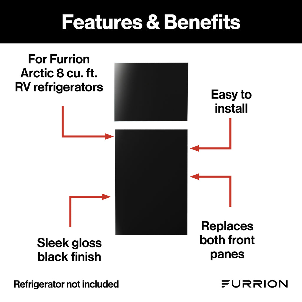- Are these door panels compatible with all furrion arctic refrigerators? No, these replacement door panels are specifically designed to fit the Furrion Arctic 8 cu. ft. RV refrigerator model.
