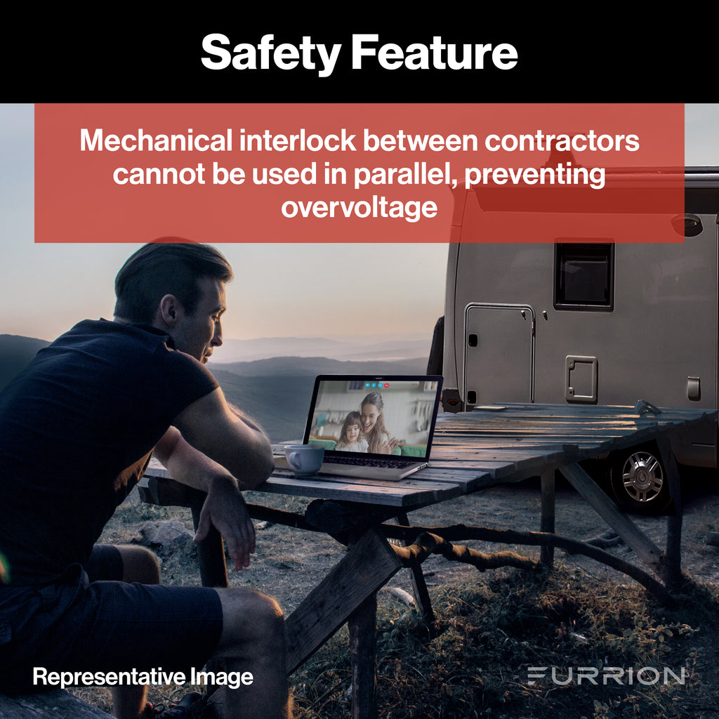 Furrion transfer switches have built-in safety boasts that prevent overheating and overvoltage. The safe switch interlock system automatically switches the unit from two power sources such as, generators, shore power or inverters. The mechanical interlock ensures two sources of power cannot be used in parallel.