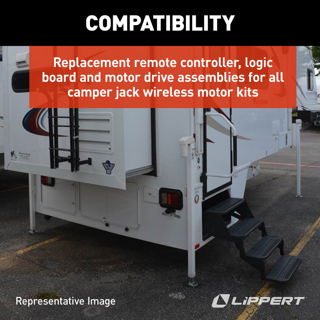 - Replaces a damaged logic board and wireless remote control for your HappiJac truck camper jack system