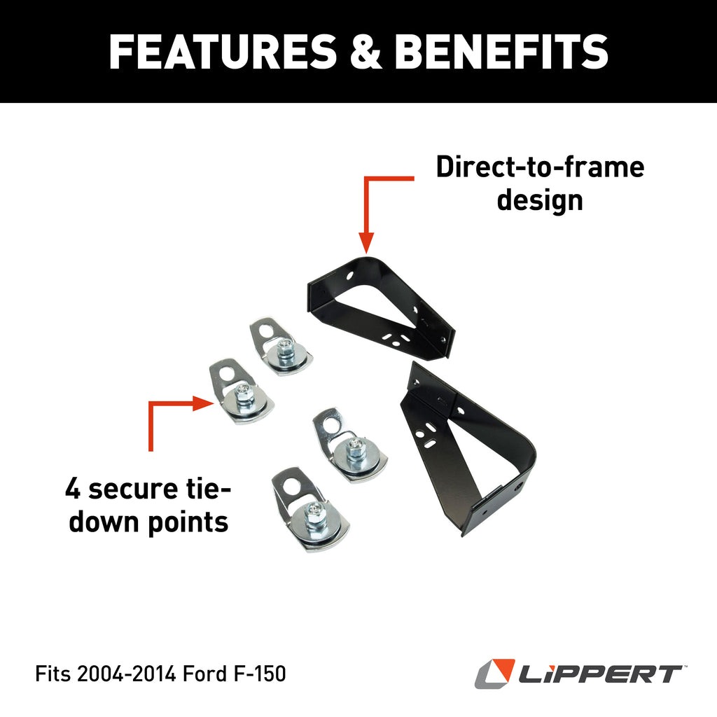 - How does this tie down set prevent camper movement? The tie down set uses four secure tie-down points and an innovative I-beam truss structure that integrates the camper as part of the truck, preventing movement in all directions including up-down, side-to-side, and front-to-back.