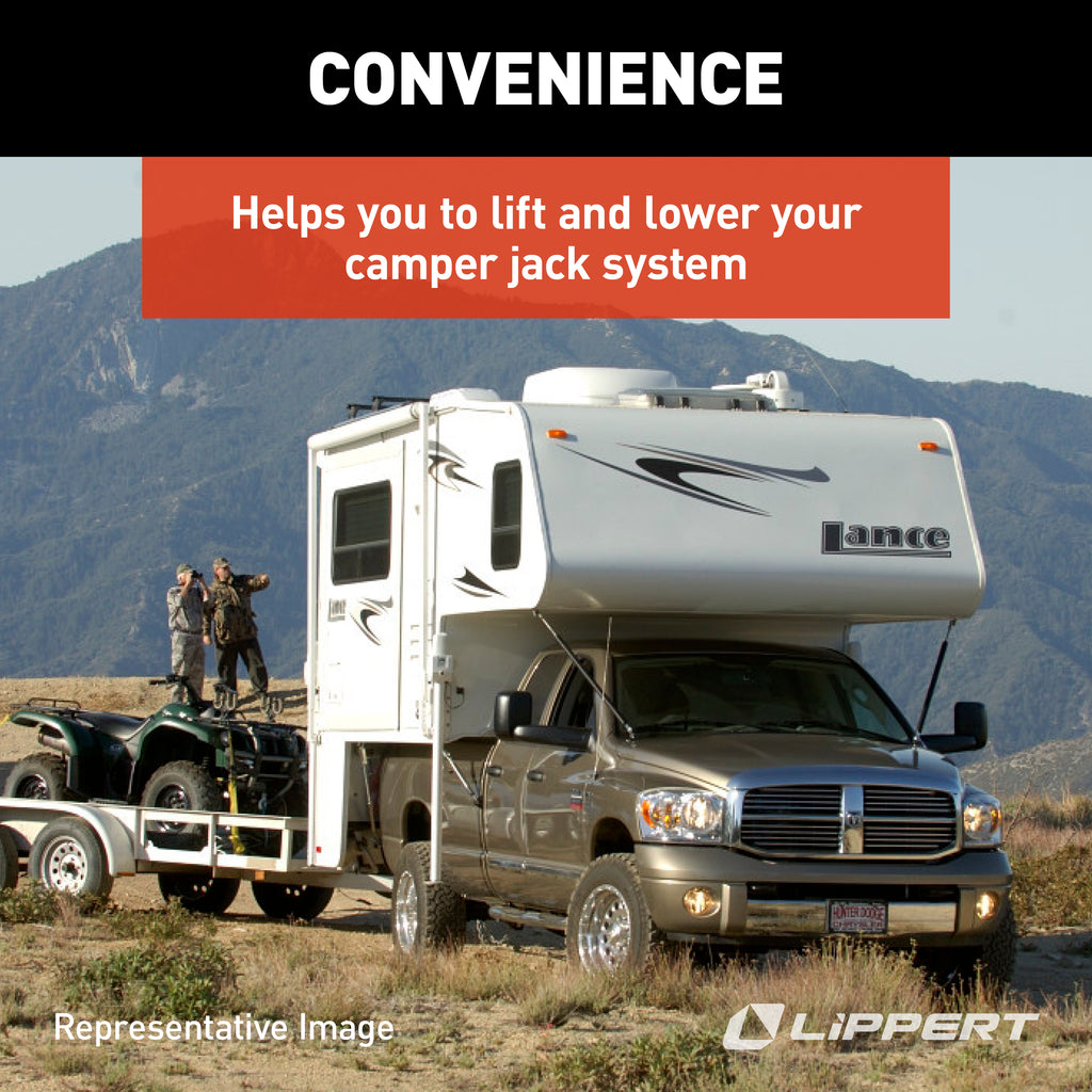 - Helps you to lift and lower your camper jack system
