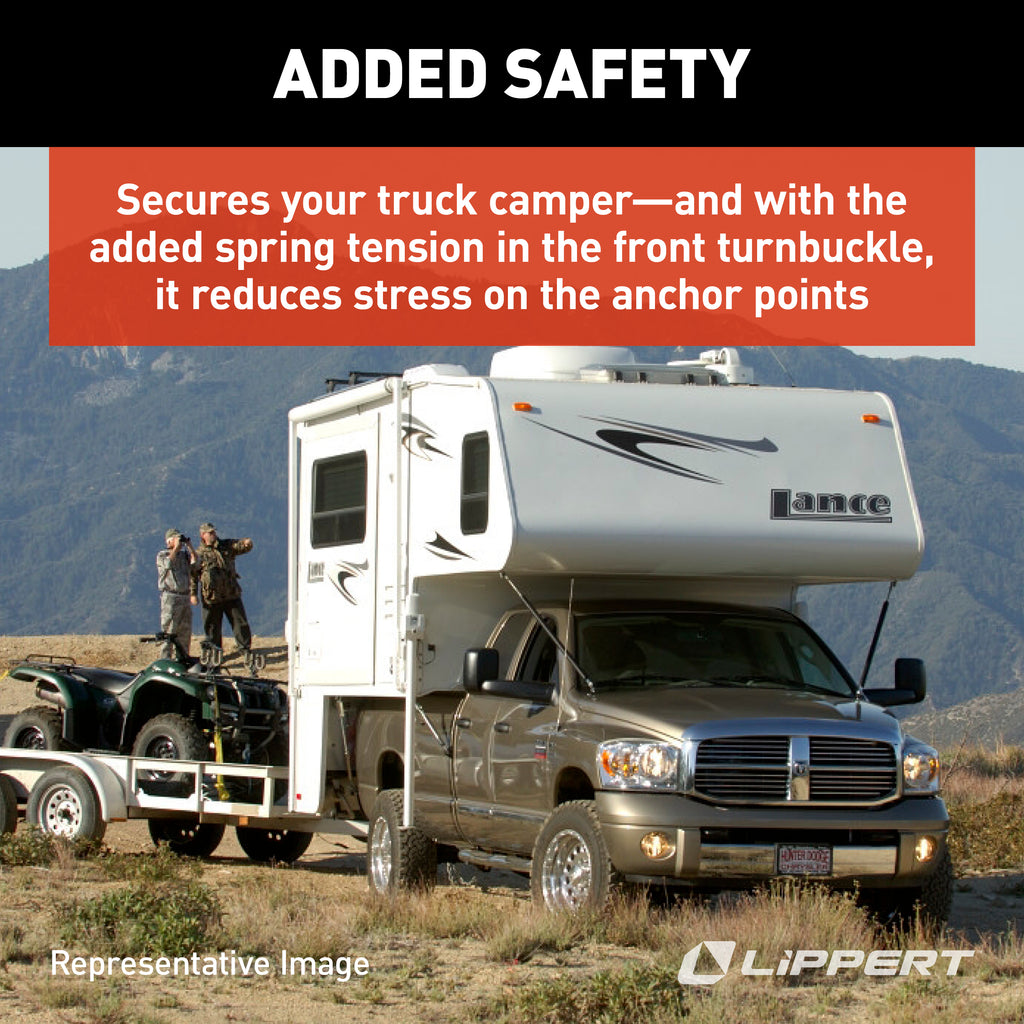 - ADDED SAFETY – Attaching the Qwik-Load turnbuckles to your truck’s bed and bumper secures your truck camper—and with the added spring tension in the front turnbuckle, it reduces stress on the anchor points