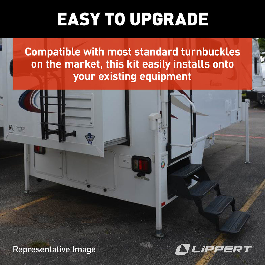 - Is this kit compatible with all turnbuckles? This upgrade kit is compatible with most standard turnbuckles on the market that use a 1-inch threaded rod.