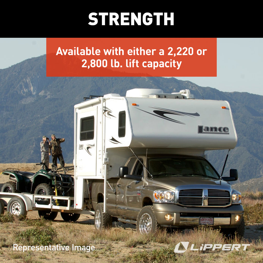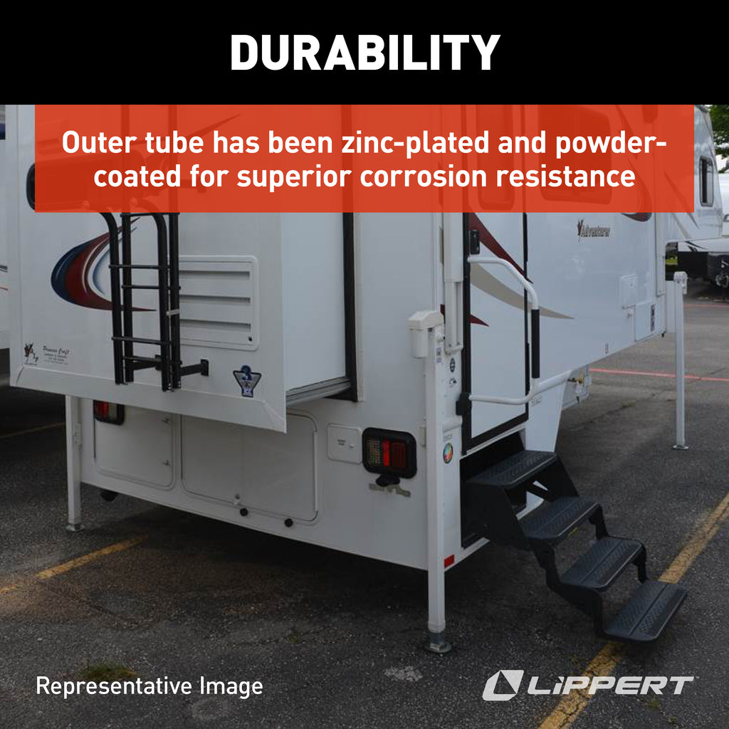 The 4220 and 4280 screw jacks boasts square tubing. These replacement jack legs are designed for HappiJac truck camper jack systems, and include an outer tube that has been zinc-plated and then powder-coated for superior corrosion resistance. It also has a wiper at the bottom of the jack to help prevent debris from getting into the jack leg, and a zinc plated inner leg. All Happijac jacks have an electrical upgrade option.