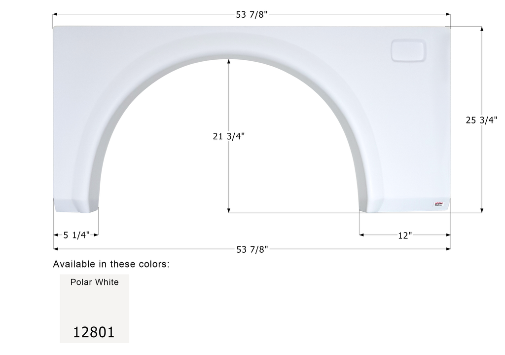 - What are the dimensions of the icon fender skirt fs2801? The fender skirt measures approximately 55 inches in length, 28 inches in width, and 5 inches in height.