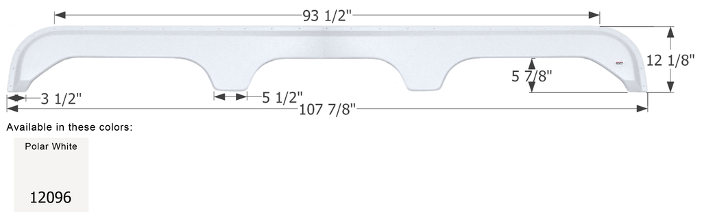 - What are the dimensions of the icon fender skirt, triple? The dimensions of the fender skirt are approximately 59 inches in length, 14 inches in width, and 3 inches in height.