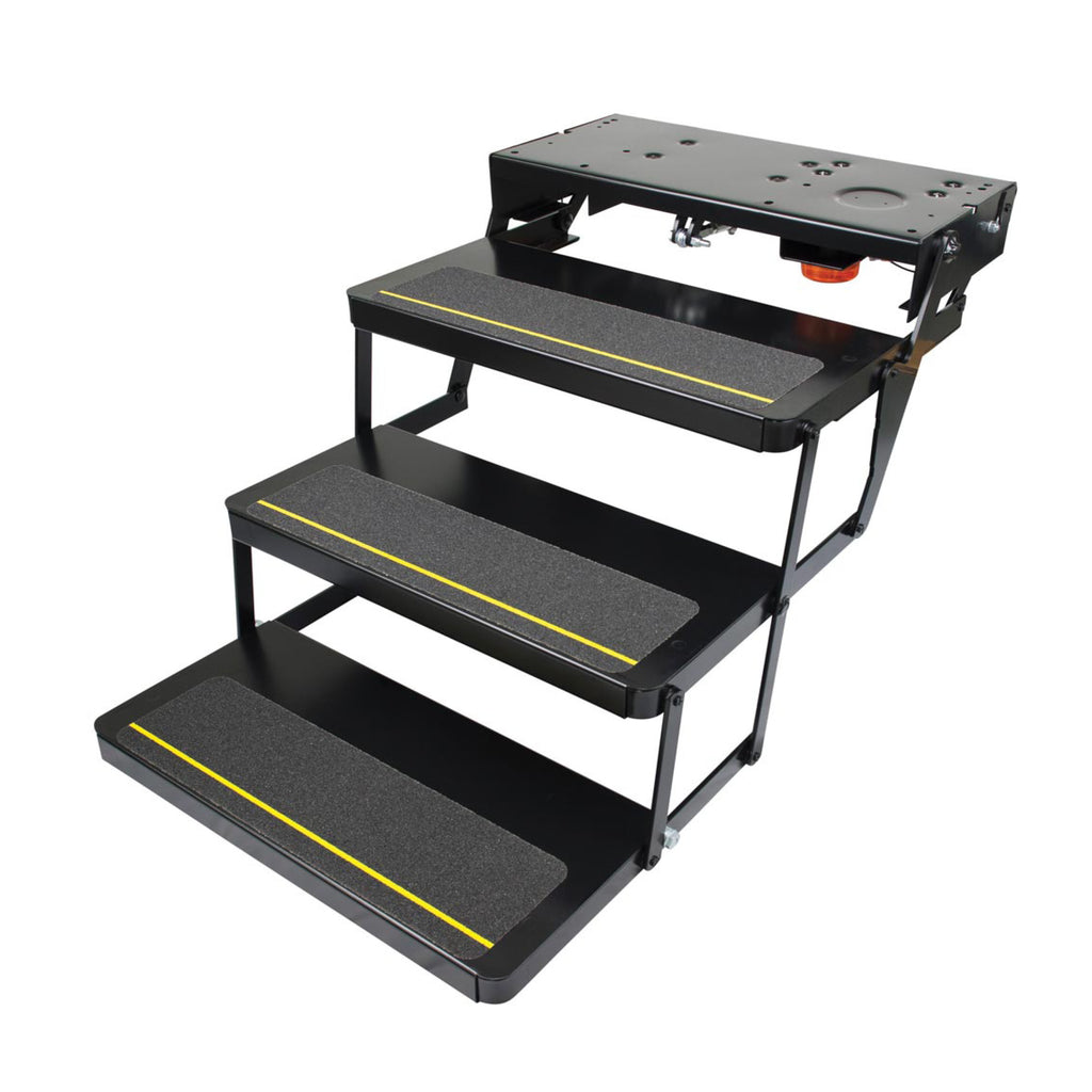 The Kwikee Electric Steps by Lippert are available in single, double or triple step configurations with multiple assembly options available. Kwikee steps are powered by a strong, 12V-DC motor that comes complete with sealed wiring connections.
