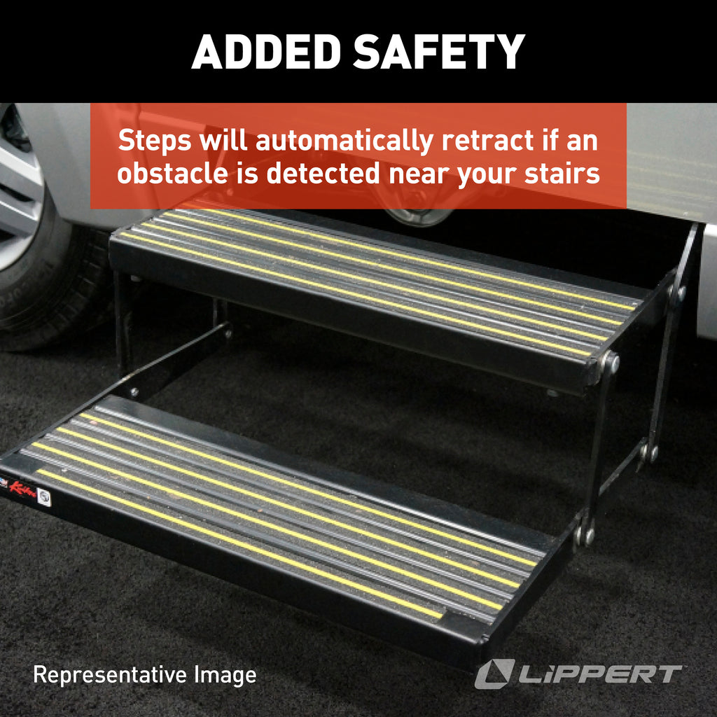- Does the lippert 23 series step assembly automatically extend and retract? Yes, the Lippert 23 Series Step Assembly automatically extends and retracts in sync with your RV's entry door movements.