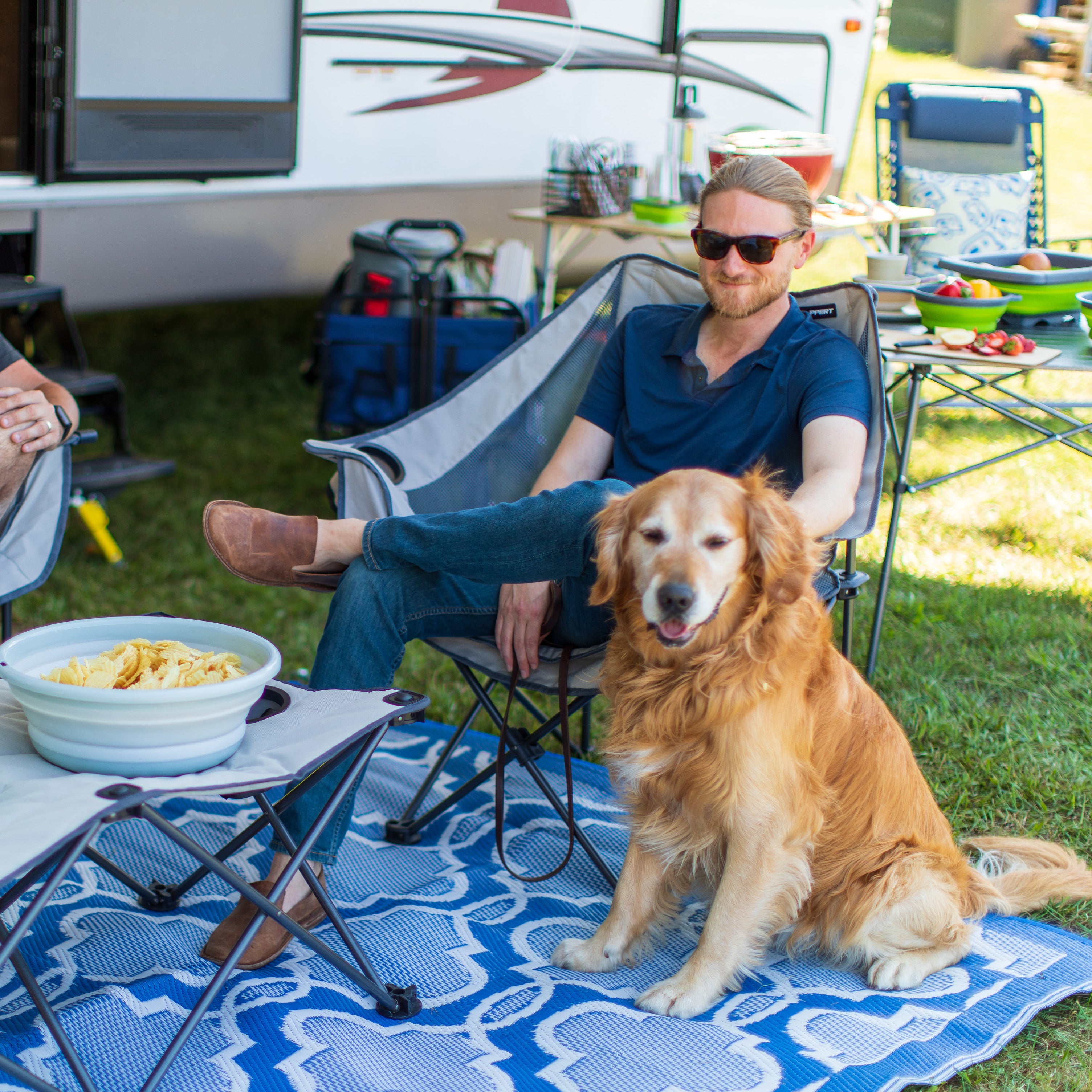 Lippert all-weather RV patio mats are stylish, long-lasting and highly functional, turning your outdoor entryway area into a comfortable gathering space. These patio mats are so much more than basic outdoor rugs. Each boasts a fun pattern to add style and excitement to your campsite! They are available in four different color scheme options and sizes, allowing you to choose the look that suits your preferences. Plus, to refresh the look any time, all Lippert RV outdoor mats are also reversible, featuring an alternative pattern on the other side. The edges of the mat are finished with rug edges for a clean look, and the corners come with reinforced loops, giving you the option to stake it down for added safety and wind resistance (stakes not included).
