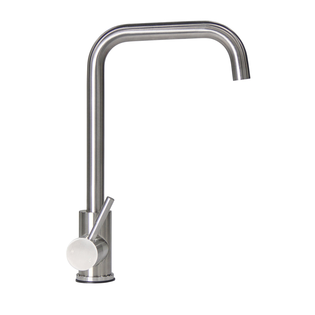 - What material is the lippert square gooseneck faucet made of? The faucet is constructed from 304-grade stainless steel for added strength and durability.