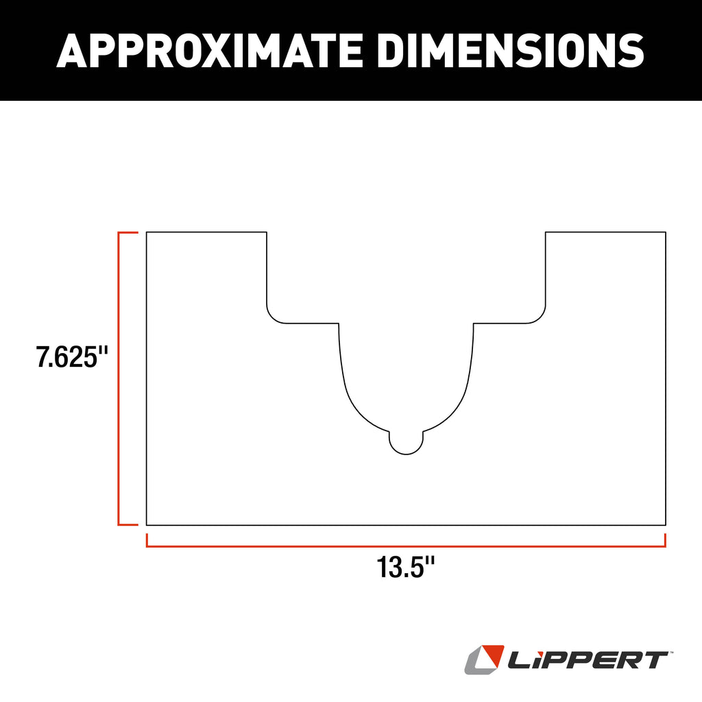 - What are the dimensions of the lippert standard steel plate for rv leveling systems? The Lippert Standard Steel Plate measures 13.5 inches by 7.625 inches.