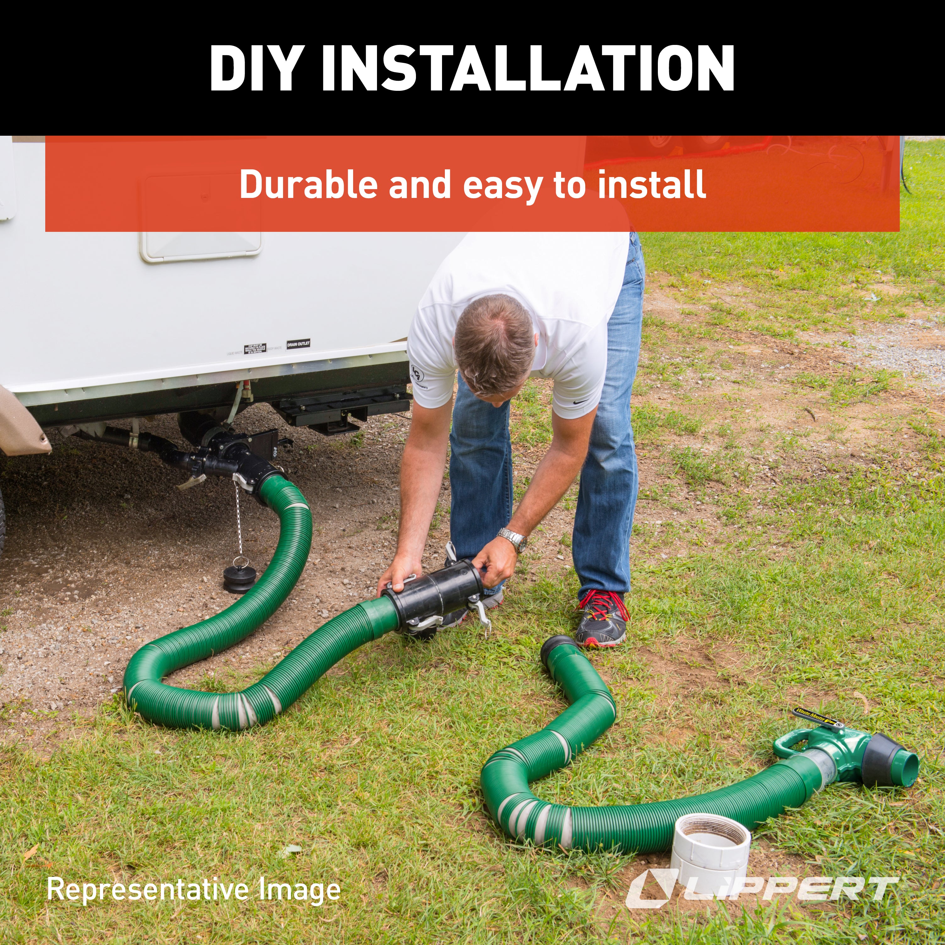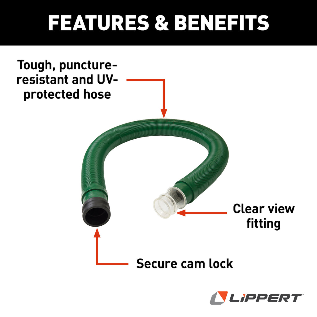 - What length does the lippert waste master hose extend to? The hose extends to a full 20 feet and stays extended during use.