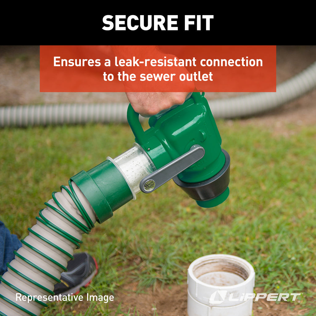 - CLEAR VIEW PORT FOR EASY MONITORING — The integrated clear view port shows when the hose is clean, allowing you to see when waste has completely been evacuated. This feature ensures your tanks and hose are thoroughly clean, making maintenance easier and more efficient