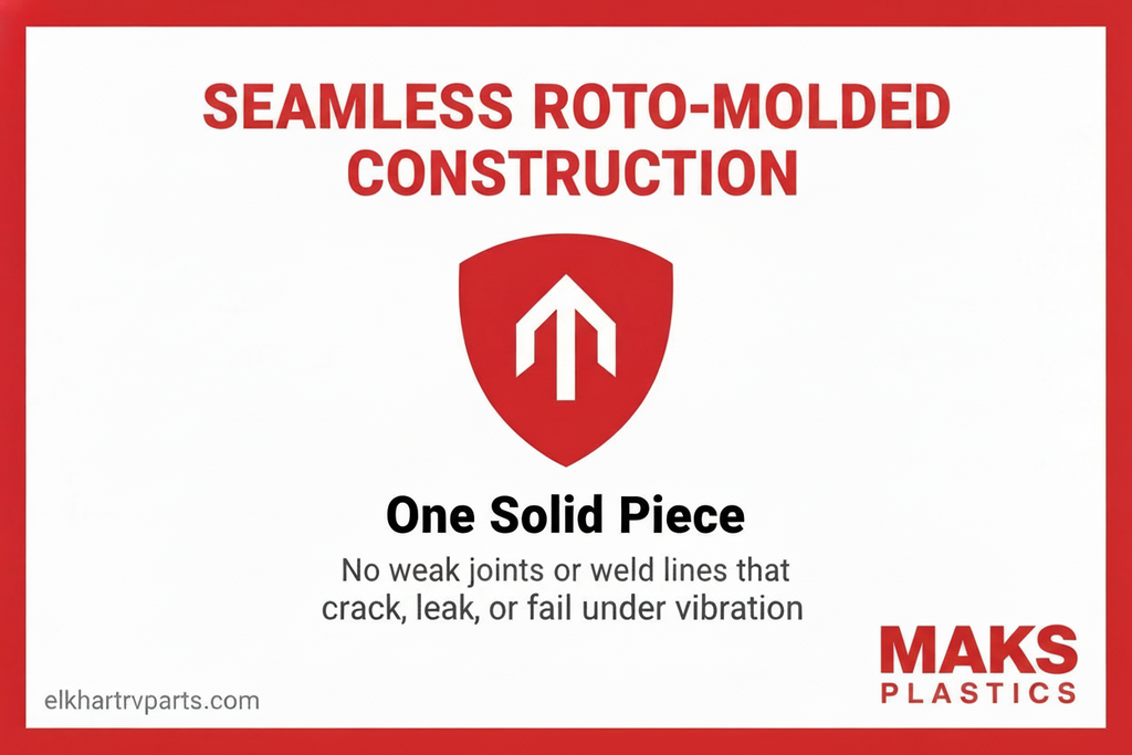 MAKS Plastics has been the trusted name in RV tank manufacturing for decades, supplying OEM-grade tanks to major RV manufacturers and aftermarket customers. Their commitment to American manufacturing, precision engineering, and food-grade quality materials ensures you're getting a tank that will perform reliably for the life of your RV. When you choose MAKS, you're choosing proven durability, exact-fit design, and the peace of mind that comes with genuine OEM-quality components.