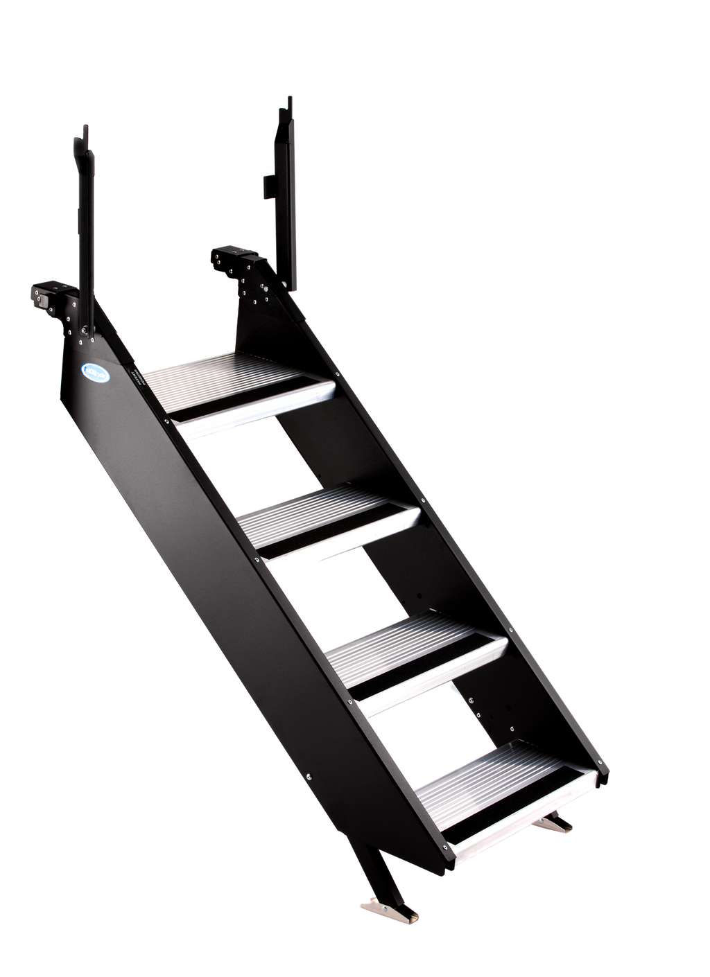 Ideal for motorhomes, Class A RVs, and travel trailers with higher top-mounted patio door entries. This 4-step system is perfect for RVers who need extended height for safe access through elevated patio doors. Essential for ensuring comfortable, safe entry and exit on RVs with taller entry heights.