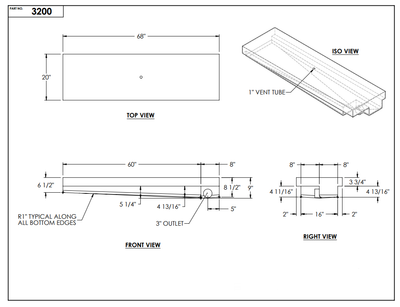 37 Gallon RV Holding Tank 68" x 20" x 9" Myer Part # 3200 (Blank Tank w/no fittings, Fittings can be added per quote)