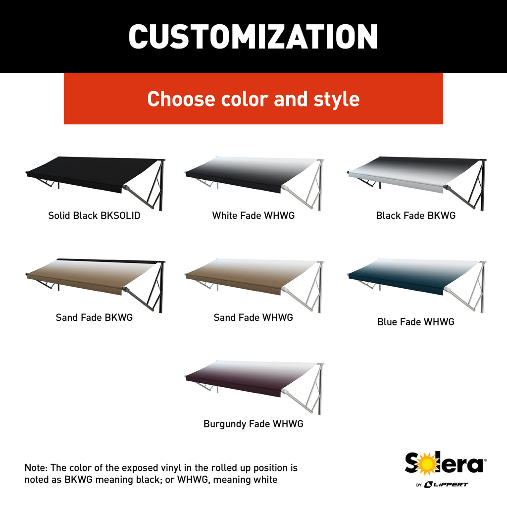 • CUSTOMIZATION — Solera makes it easy for you to customize and build your perfect RV awning in the color and style of your choice