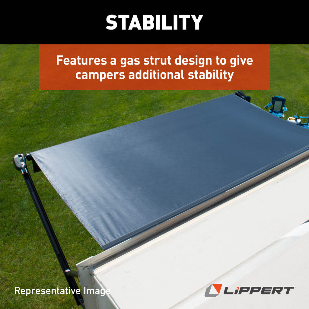 • STABILITY — Features a gas strut design to give campers additional stability when lowering and raising their RV and trailer awnings